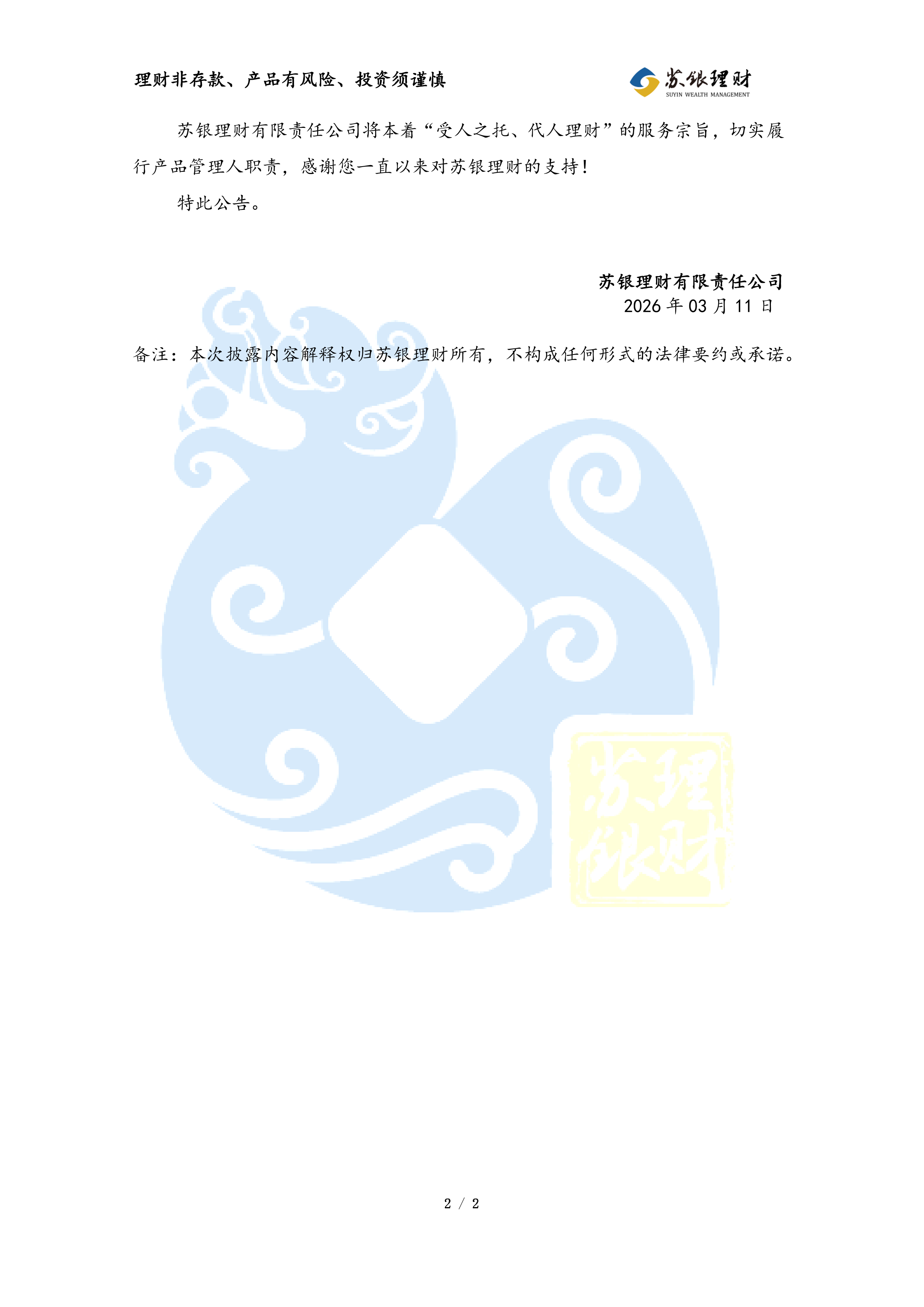 “苏银理财恒源1年定开39期”理财产品非标准化债权类资产变动公告(2026年03月11日)