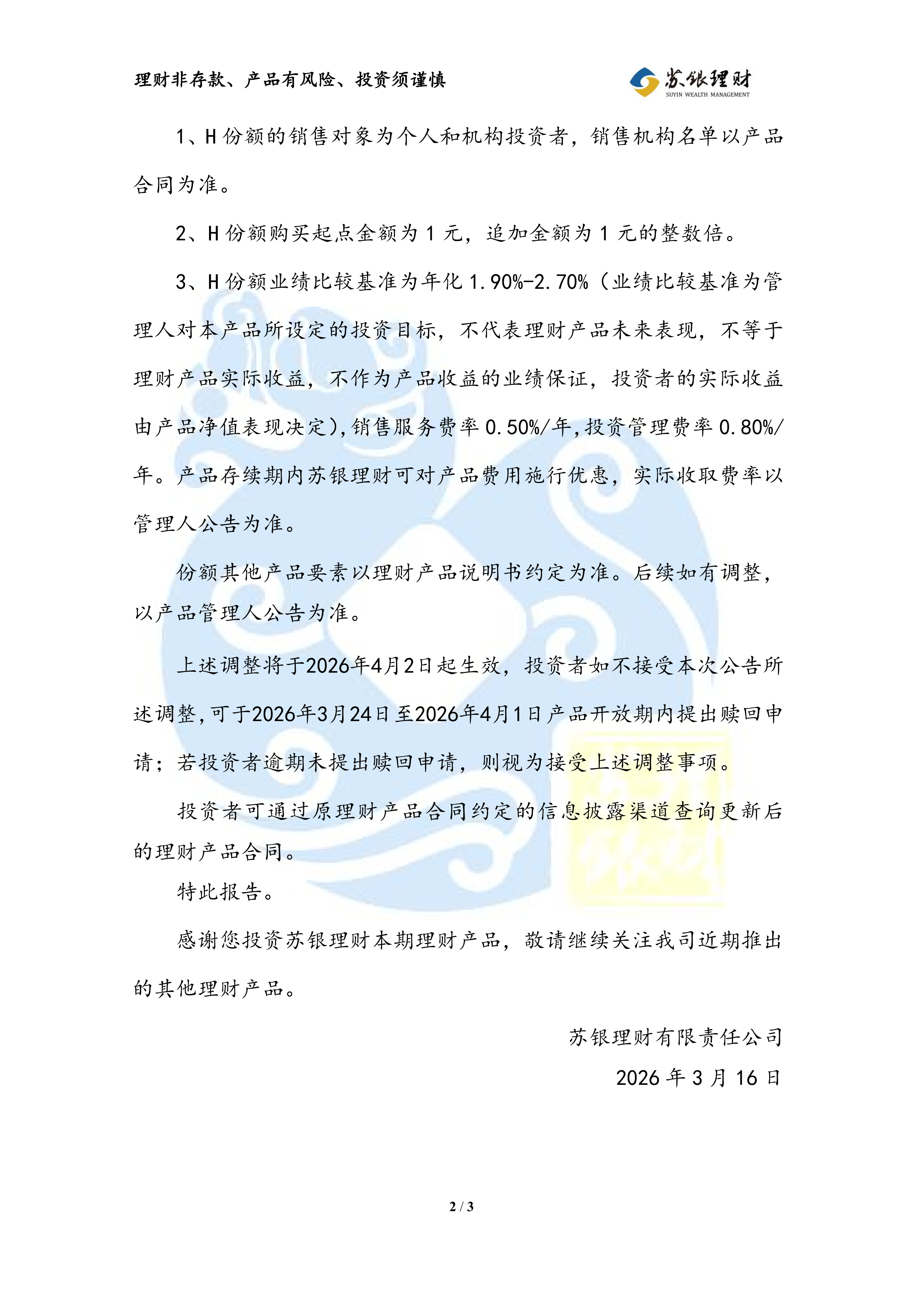 关于调整“苏银理财恒源季开放9号”理财产品要素的公告(2026年3月16日)